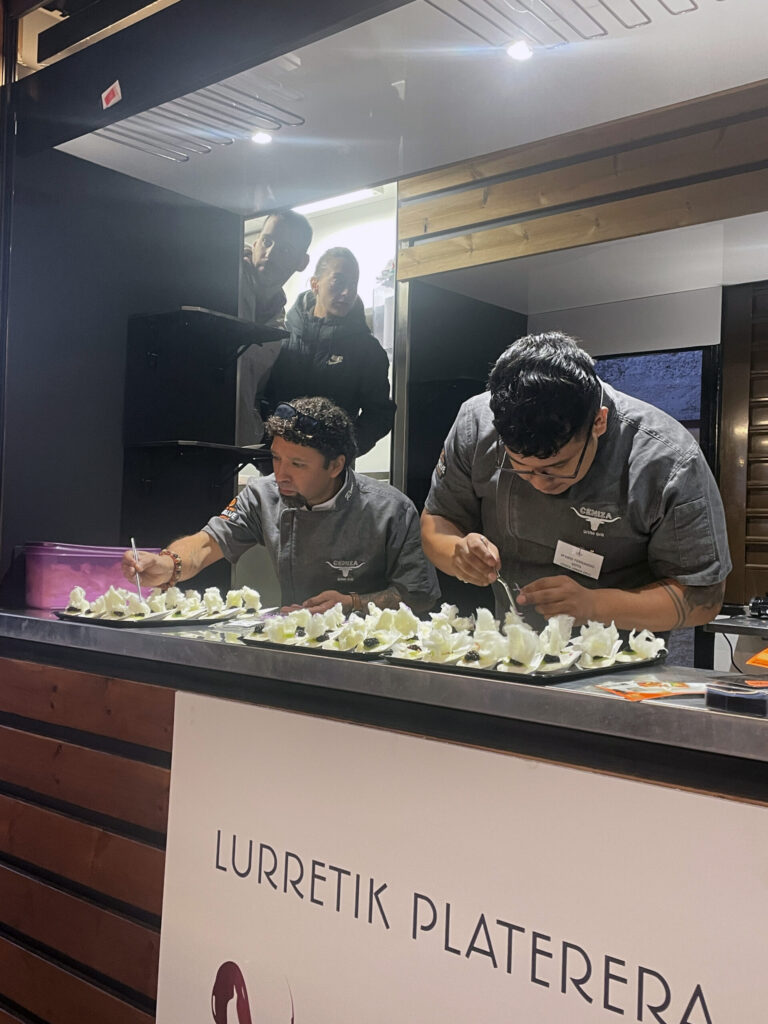 El centro de Beortegui se engalanó con dos foodtruck de Reyno Gourmet como protagonistas del evento; frente a ellas, mesas, guirnaldas de luces y banderines decorando el espacio central del pueblo y junto a las mesas los y las protagonistas de esta primera edición de La Tierra al Plato ofreciendo al público las creaciones gastronómicas fruto de su colaboración, que ya están en los restaurantes participantes, servidas en esta ocasión en formato pincho.