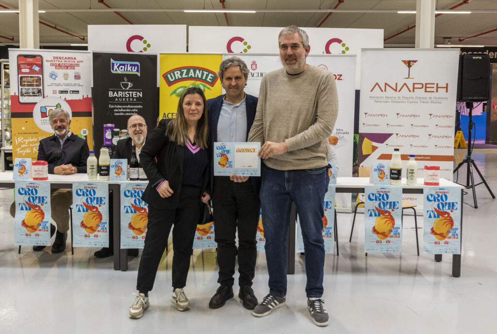 El acto se ha celebrado en el Cash de la Cooperativa de Hostelería y ha contado con la presencia Koldo Martínez, concejal de Turismo del Ayuntamiento de Pamplona, Patxi Saez, Director de Marketing y Producto Turístico del Gobierno de Navarra además de Beatriz Huarte de Anapeh, Carlos Albillo de la Asociación del Casco Antiguo y Alvaro Urdanoz, de Harinas Urdanoz,
