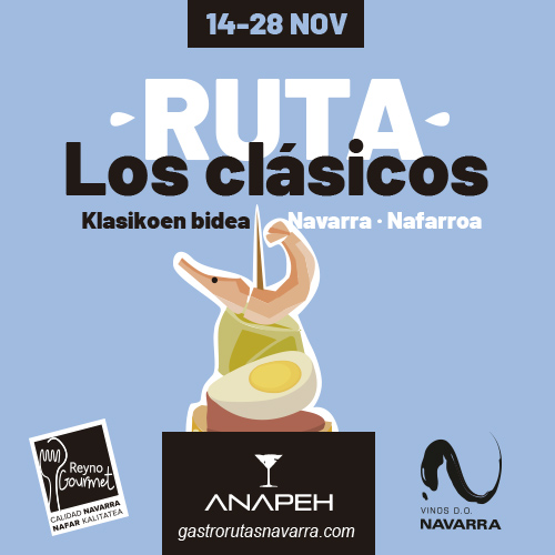 ANAPEH organiza una ruta del 14 al 28 de Noviembre de bares por toda Navarra en la que los establecimientos ponen en valor la especialidad de cada casa. Pintxos, tapas o raciones imprescindibles, esos que no pueden desaparecer de la carta por ser los preferidos de la clientela. La Ruta los Clásicos es una oportunidad para descubrir lo mejor de la gastronomía navarra con propuestas que van de lo más tradicional a lo sorprendente, según la idiosincrasia de cada establecimiento.
