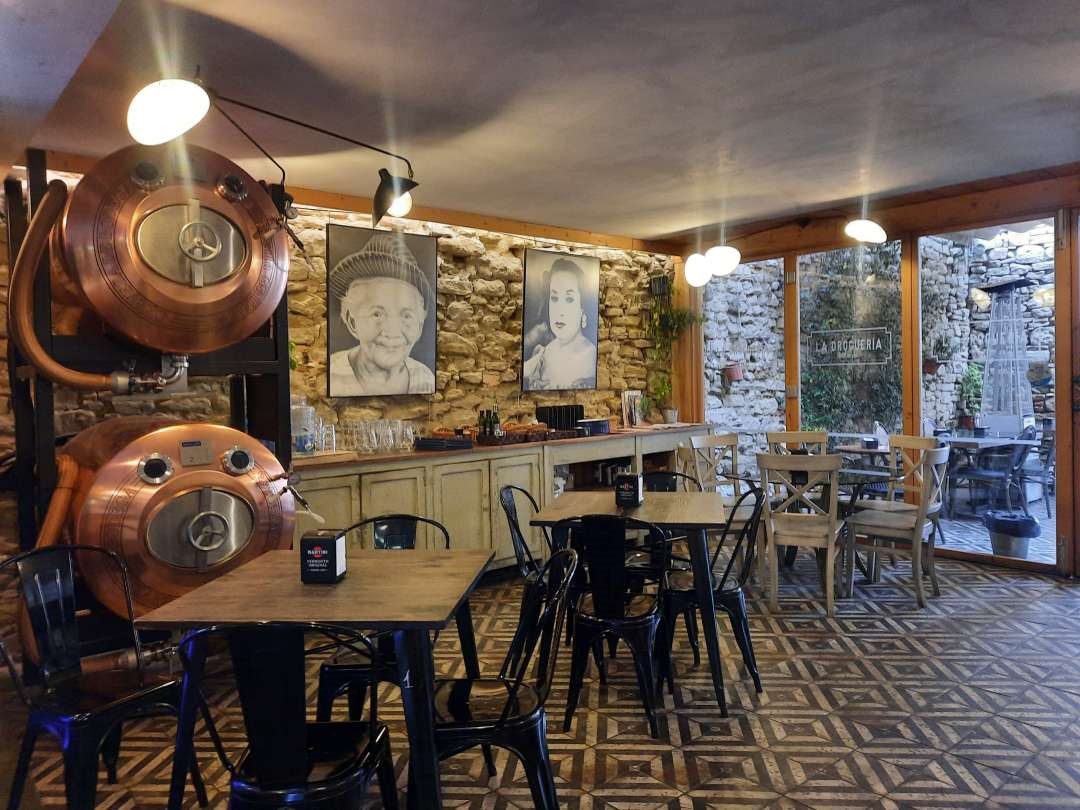 Está totalmente montado, equipado y con una decoración especial que conserva elementos de lo que fue. La Droguería es hoy un local cultural y de encuentro, con amplio patio y gran capacidad de comensales (150 aproximadamente) para cualquier tipo de evento y tiene una superficie de unos 215 m2 útiles.